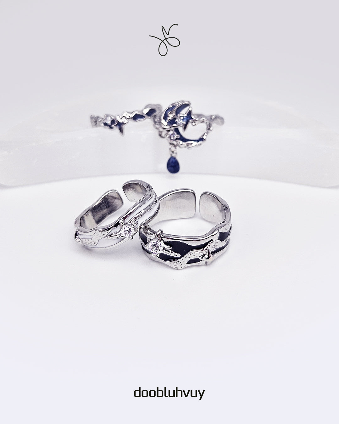 Worn with Midnight's Shadowlight, it completes a story of contrast and duality — light and shadow, quiet and storm. The Midnight Shadowlight and Starpath can be worn as a couple ring set, with one thicker than the other.