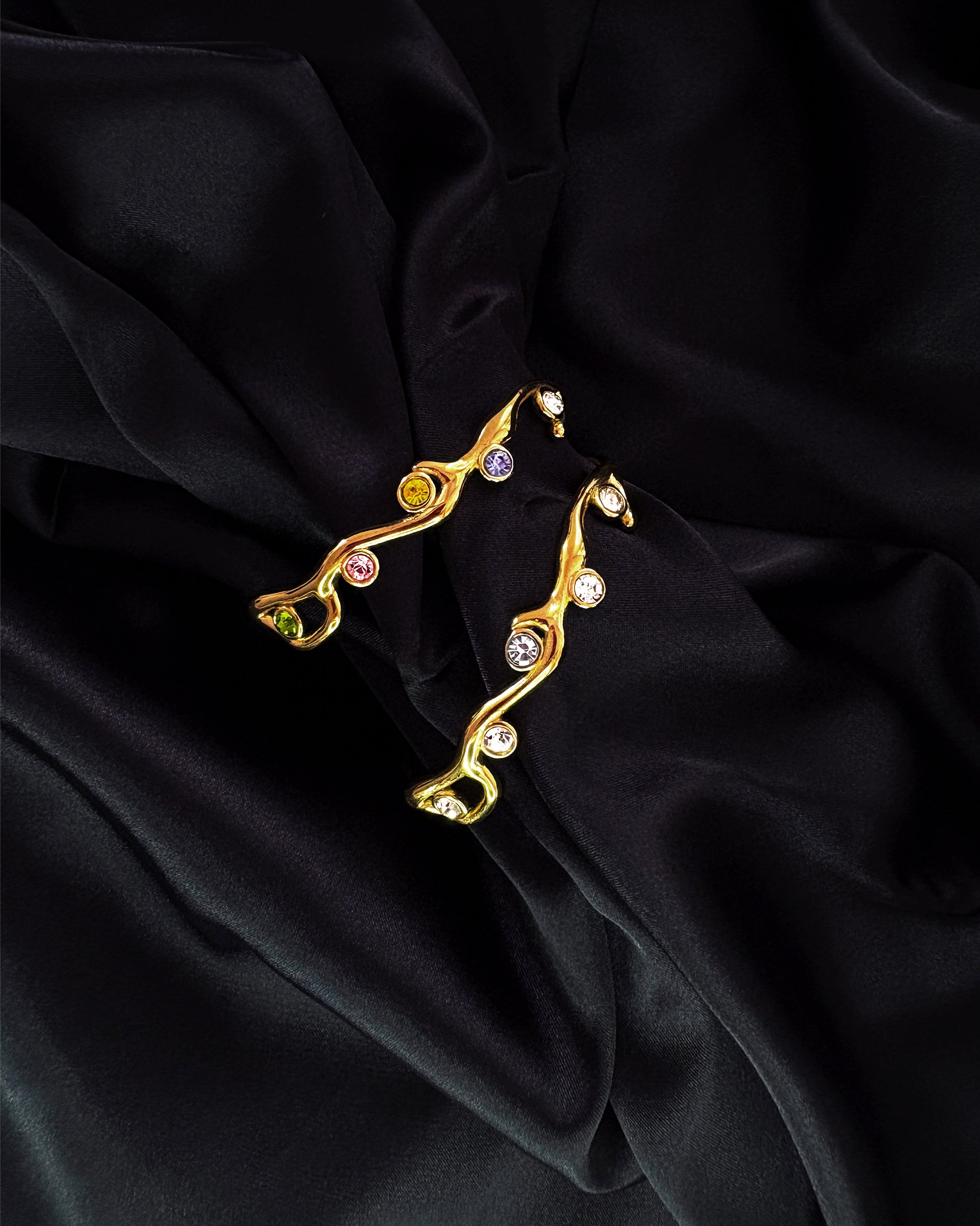 Striking in its presence, this bangle blends strength with playfulness. The solid reef form grounds it in power, while the vibrant gems bring a burst of color and light, a piece that feels both elemental and radiant.